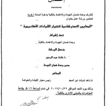 سوف يتم بمشيئة الله تعالى اجتماع مجلس قسم تمريض النساء والتوليد برئاسة السيدة الأستاذ الدكتور/ منال فاروق مصطفى رئيس قسم تمريض النساء والتوليد وبحضور السادة أعضاء هيئة…