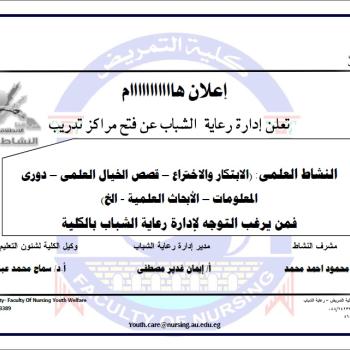 سوف يتم بمشيئة الله تعالى اجتماع مجلس قسم تمريض الأطفال برئاسة السيدة الأستاذ الدكتور/ إيمان سيد أحمد أحمد - رئيس قسم تمريض الأطفال وبحضور السادة أعضاء هيئة التدريس ومعاونيهم بالقسم…