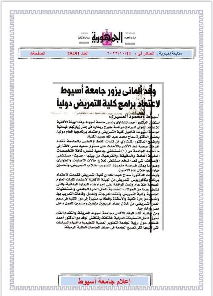 كلية التمريض جامعه اسيوط فى عيون الصحافة
