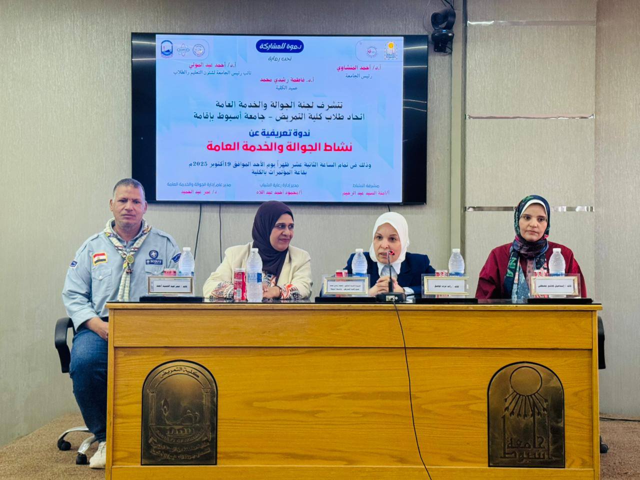 في إطار حرص كلية التمريض – جامعة أسيوط على دعم الأنشطة الطلابية الهادفة وتعزيز روح العمل الجماعي، نظّمت لجنة الجوالة والخدمة العامة بالكلية، بالتعاون مع الإدارة العامة للجوالة والخدمة العامة بإدارة رعاية الطلاب بالجامعة، ندوة تعريفية عن نشاط الجوالة والخدمة العامة.