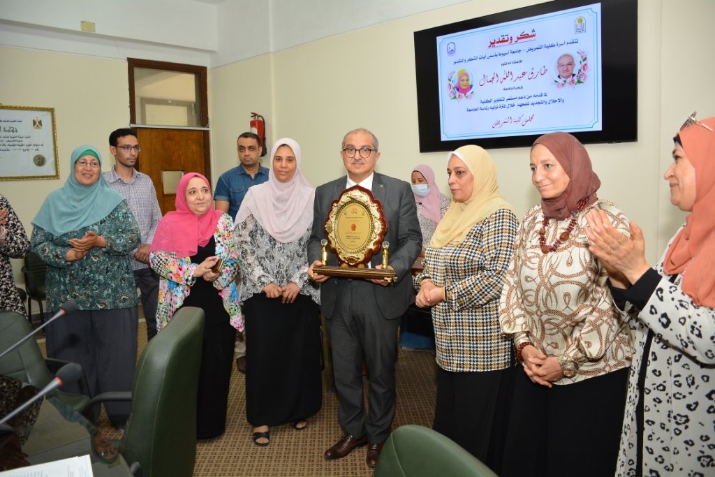 مجلس كلية التمريض والمعهد الفني للتمريض يكرم السيد الأستاذ الدكتور/ طارق الجمال رئيس جامعة أسيوط تزامناً مع إتمام سيادته الفترة القانونية للرئاسة الجامعة