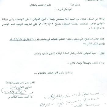 المذكرة الواردة من العقيد أ.ح/ أحمد عمر سليم مدير إدارة التربية العسكرية بشأن تعرض الطلاب لعملية نصب من قبل بعض الجروبات