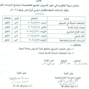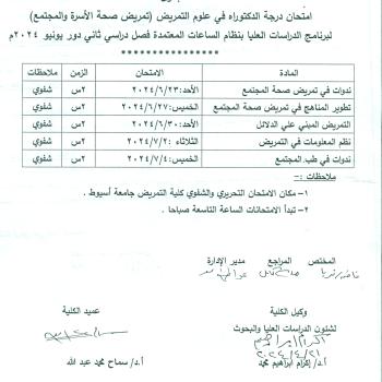 جداول إمتحان الدراسات العليا( الدكتوراه ) دور يونيو 2024م