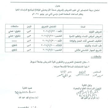 تابع جداول إمتحان الدراسات العليا( الماجستير ) دور يونيو 2024م