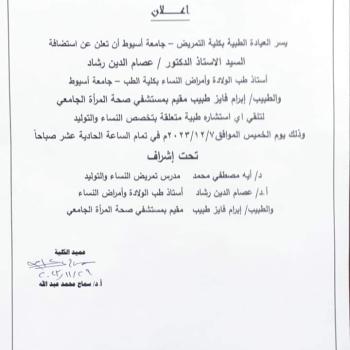 عزاء واجب**** تنعى السيد الأستاذ الدكتور سماح محمد عبدالله عميد الكلية والسادة الوكلاء والسادة اعضاء هيئه التدريس والعاملين بالكلية بخالص الحزن والأسي السيد الدكتورة حكمت ابراهيم عبد الكريم رئيس قسم تمريض الاطفال فى وافاة زوج سيادتها