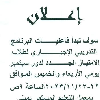 إعلان سوف تبدأ فاعليات البرنامج التدريبي الأجباري لطلاب الأمتياز الجدد لدور سبتمبر