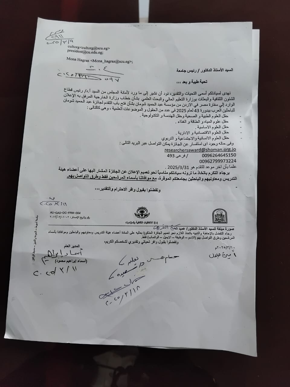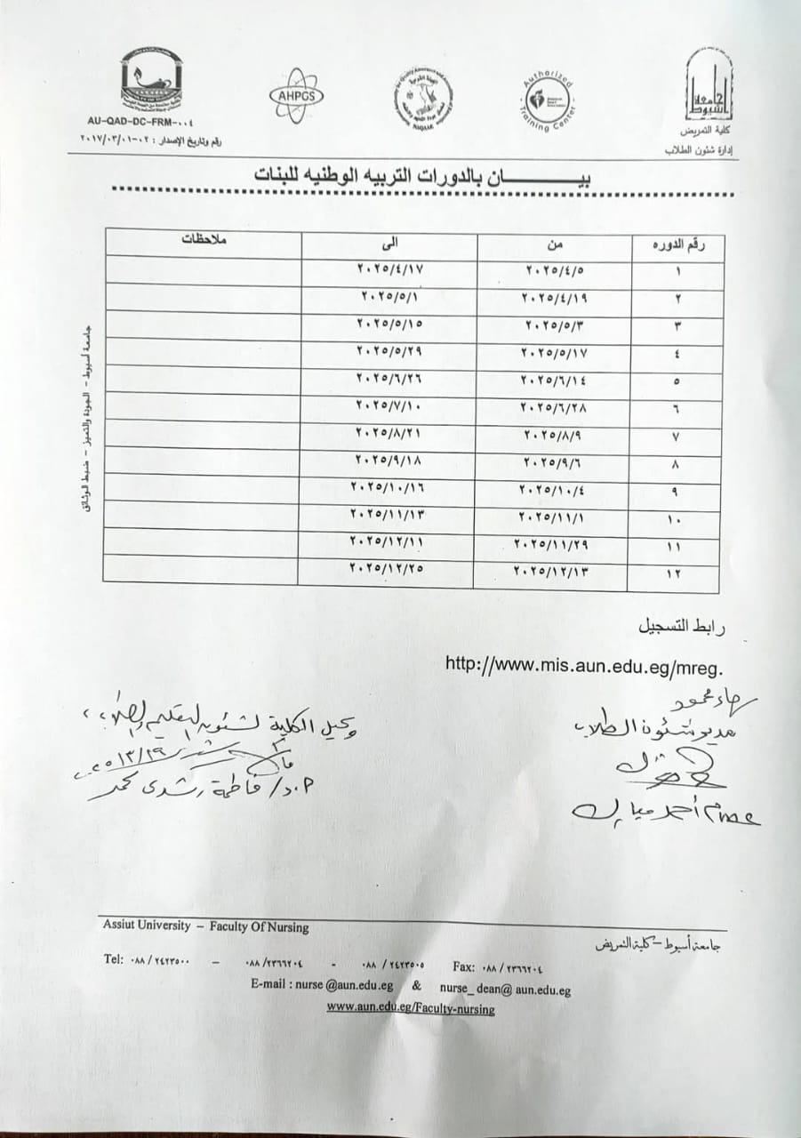 وفى السياق اعلنت السيد الاستاذ الدكتور/ سماح عبدالله عن موافقة المجلس الاعلى للجامعات للإحاطة بالقرار الوزاري رقم (567) بتاريخ 5-3-2025م بالموافقة على اللائحة الداخلية لكلية التمريض جامعة اسيوط (مرحلة الدراسات العليا) بنظام الساعات المعتمدة والعمل بها ويلغي كل نص يخالف أحكامها.