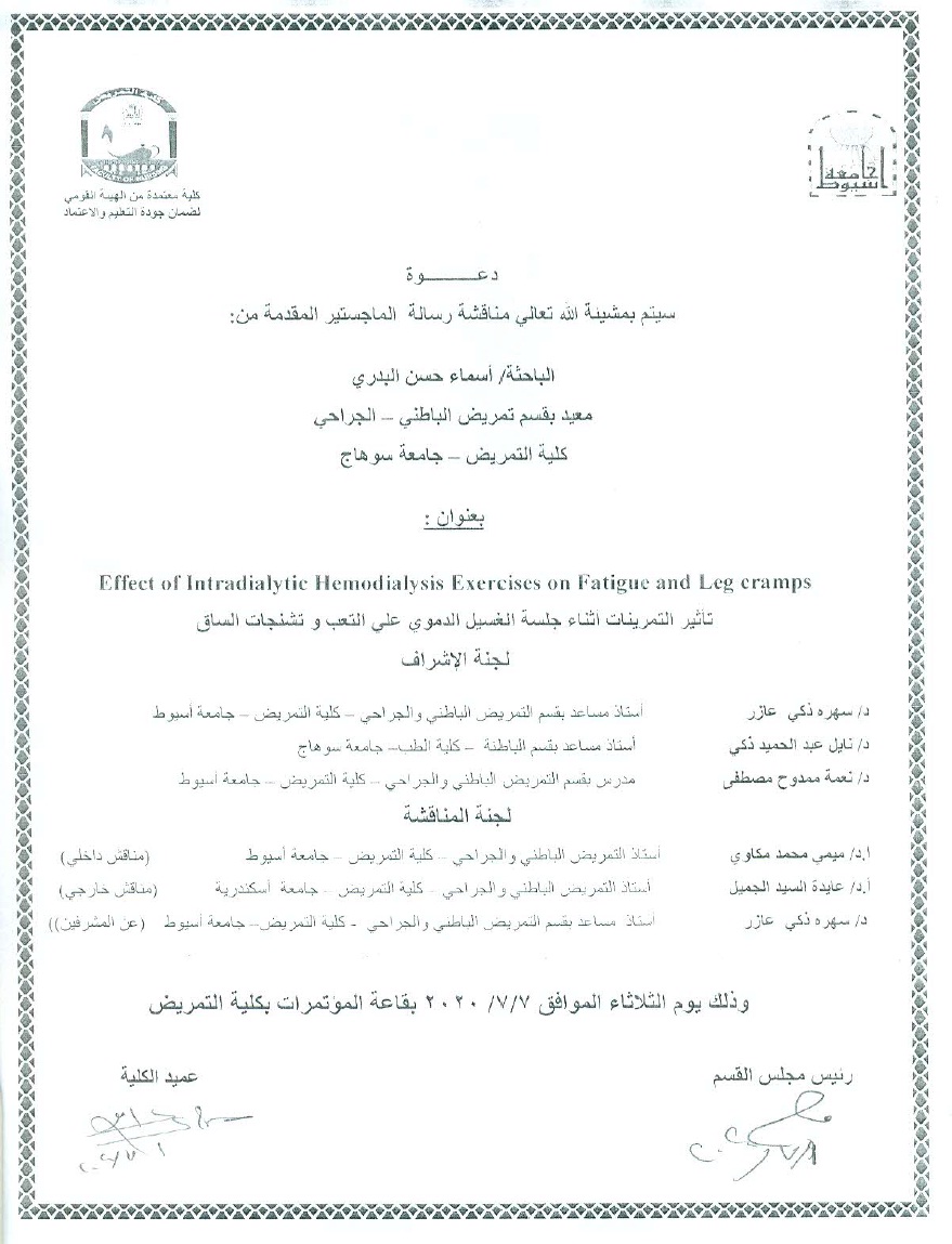 مناقشة رسالة الماجستير للباحثة/ أسماء حسن البدري