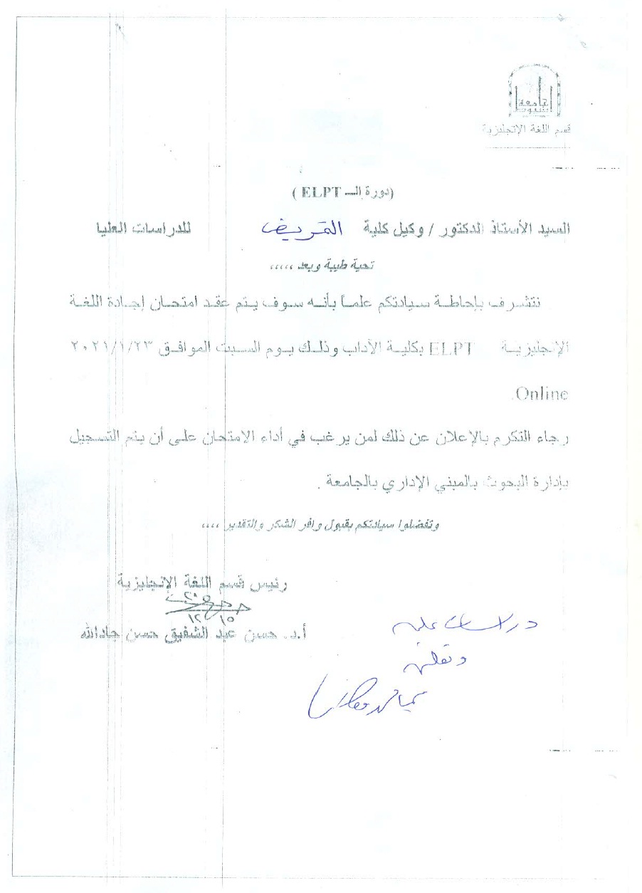 وذلك بمشيئة الله تعالى يوم الأحد الموافق 6/12/2020م بقاعة مجلس القسم.