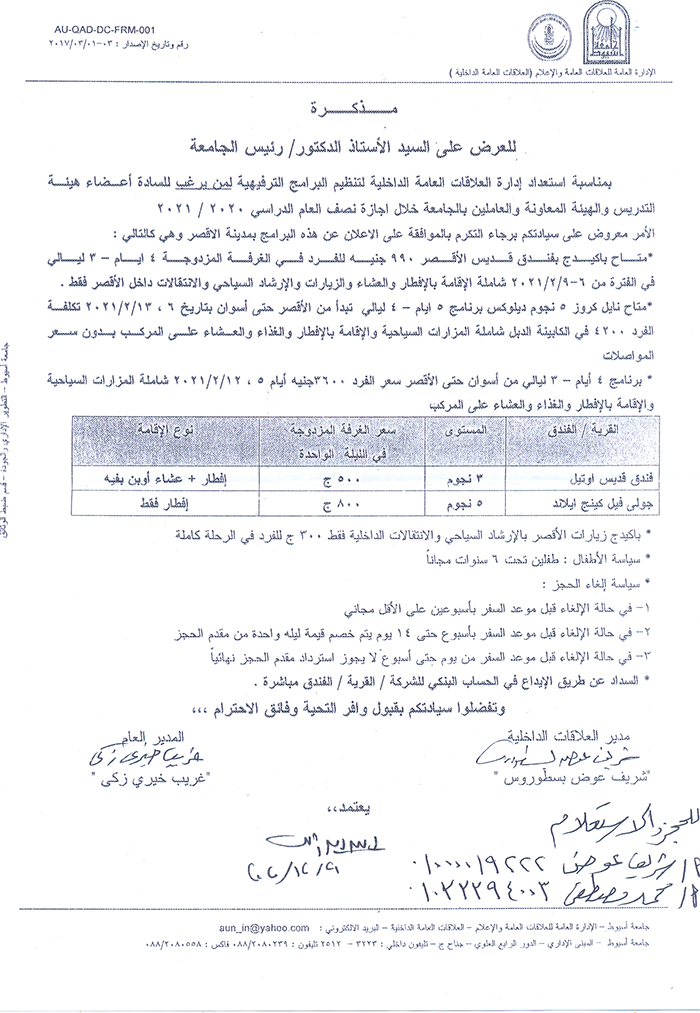 رئيس جامعة أسيوط يؤكد على استمرار العمل بقرار تخفيض العمالة خلال إجازة نصف السنة وإلغائه مقروناً بصدور قرار جديد من رئيس مجلس الوزراء