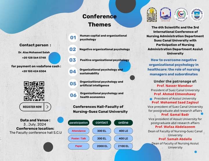 كما صرحت السيد الاستاذ الدكتور سماح محمد عبدالله عميد الكلية بان هذا المؤتمر يعد الثالث فى نسختة الذى يجمع بين جامعتى اسيوط وجامعة قناة السويس وأن هذا المؤتمر يعتبر استدامة لرؤية مصر ٢٠٣٠ ومواكبة التطورات الجديدة فى مجال التمريض لتوطيد العلاقات وتبادل الخبرات العلمية والتشجيع على المشاركة المجتمعية بين الجامعتين وكذلك تشجيع الباحثين على الاستفادة والاطلاع على ما هو جديد في هذا المجال ومعالجة الكثير من التحديات والتى تواجه ألكادر الصحى .