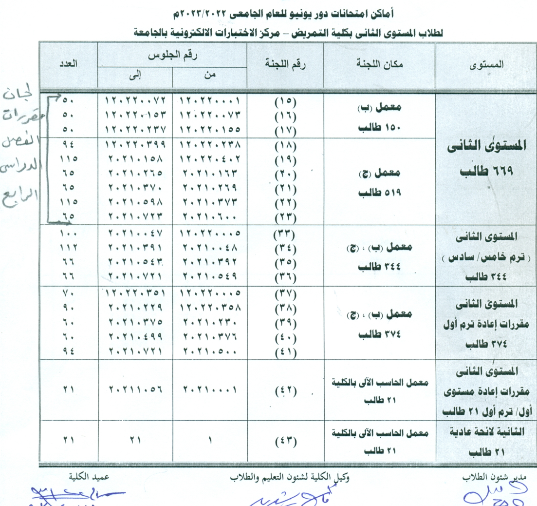 تابع بيان بأماكن امتحانات دور يونيو للعام الجامعي2022-2023 لطلاب المستوى الثاني بكلية التمريض - مركز الاختبارات الالكترونية بالجامعة