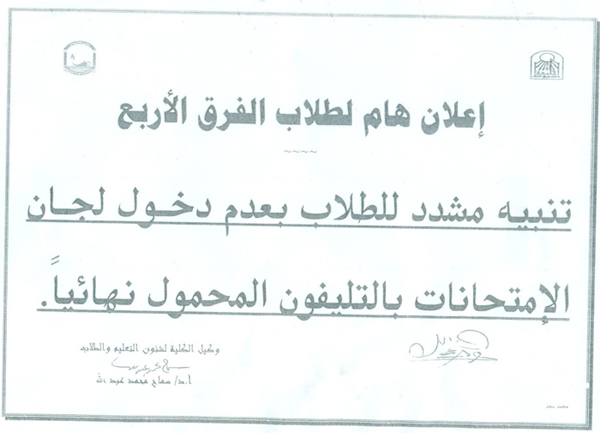 تنبيه مشدد للطلاب أثناء الامتحانات