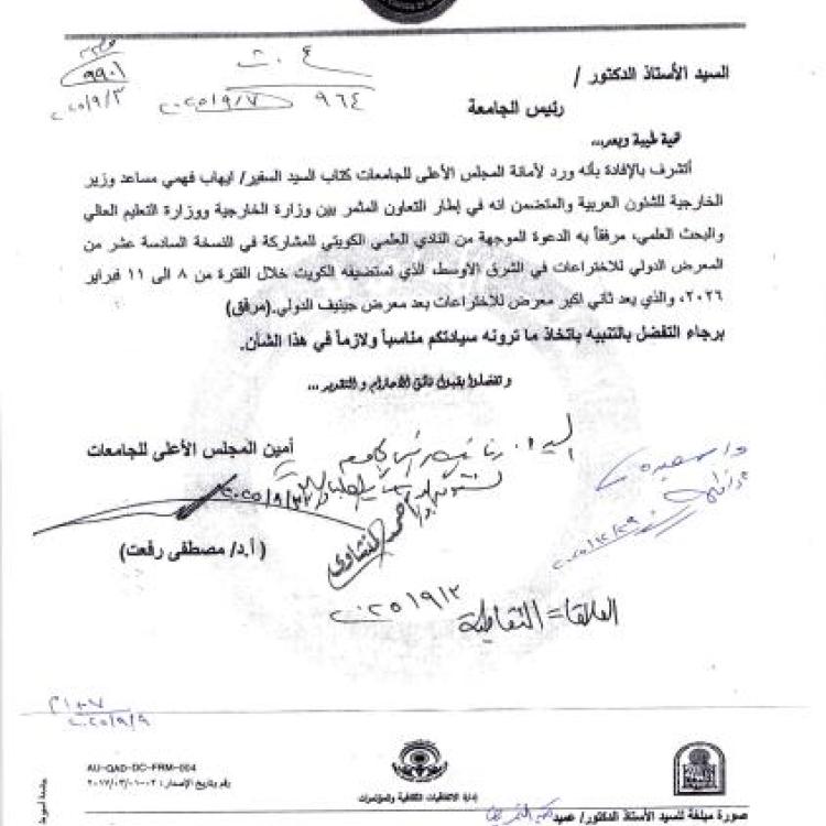 1- The International Exhibition of Inventions in the Middle East, hosted by Kuwait during the period from 8 to 11 February 2026
