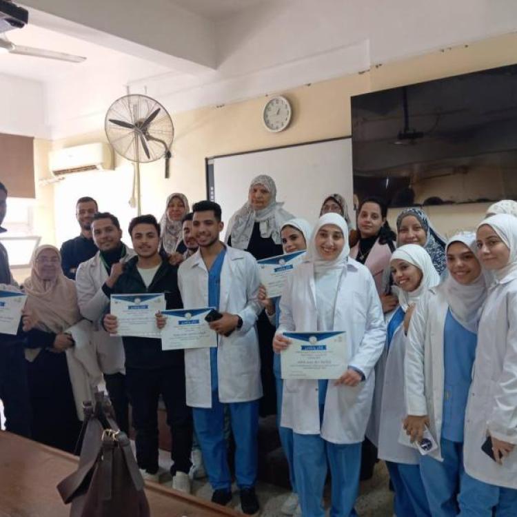 Professor Dr. Fatima Rushdi Muhammad, Dean of the Faculty of Nursing, the Administration of the Faculty of Nursing, the faculty members and employees, and Dr. Abeer Hassan Al-Sayed, teaching assistant in the Department of Medical and Surgical Nursing,