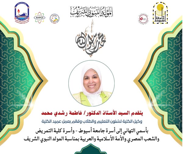 ? On the occasion of the Prophet's Birthday ?✨ Professor Dr. Fatima Rushdi Mohamed, Vice Dean for Education and Student Affairs and Acting Dean of the Faculty of Nursing, extends her warmest congratulations to: the Assiut University family, the Faculty