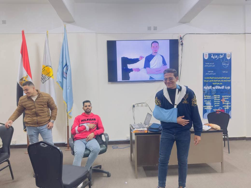 The Center is holding a training course on first aid for 50 male and female students from the Faculty of Commerce at Assiut University
