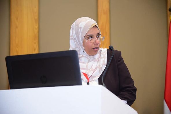 Lecture on women's safety during breast self-examination and breast cancer, which was delivered by Prof. Dr. Intisar Muhammad Younes, Professor of Gynecological Nursing and Dean of the Faculty at Sphinx University