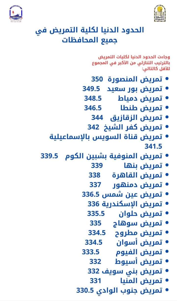 Minimum requirements for nursing school in all Egyptian universities