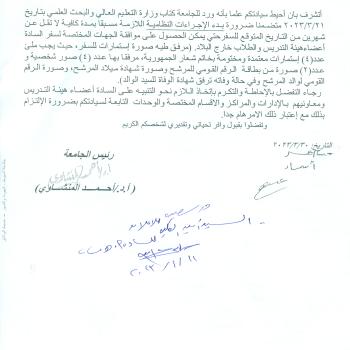 Attention the faculty members and their assistants in the relevant departments, centers, departments, and affiliated units of the need to commit to starting the necessary formal procedures in advance, at least two months from the expected date of travel.