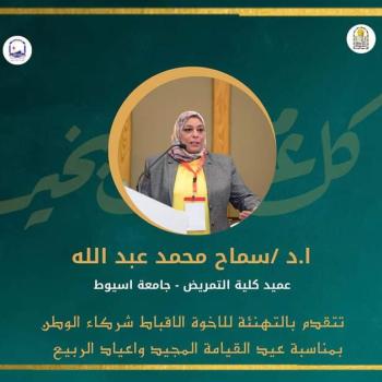 Prof. Dr. Samah Muhammad Abdullah, Dean of the College, the Vice Deans, faculty members, faculty staff and students extend their heartfelt congratulations to the Christian brothers, the partners of the homeland,