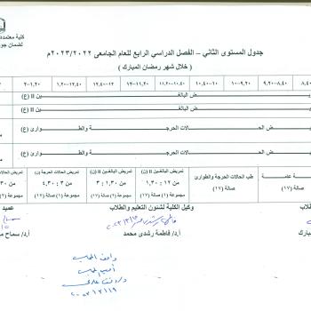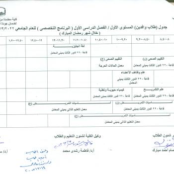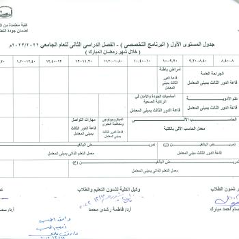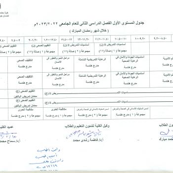 schedule of the first level, the second semester of the academic year 2022-2023 AD (during the holy month of Ramadan)