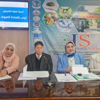 One of the sessions of the Fifth International Conference of the Faculty of Nursing, Assiut University and the third of the Faculty of Nursing in Upper Egypt, lectured by Dr. Nani Mohamed Irfan