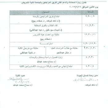 Schedule of the simulation and technical support visit of the university reviewers team to the College of Nursing (first day) on Sunday 26/2/2023