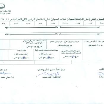 Scedule of the second level (retake/registration courses) for the second semester of the academic year 2022-2023 AD