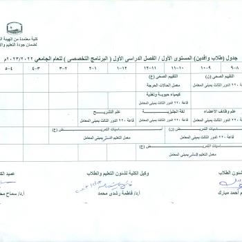 Scedule of the first level (international students) (specialized program) for the second semester of the academic year 2022-2023 AD
