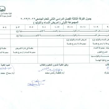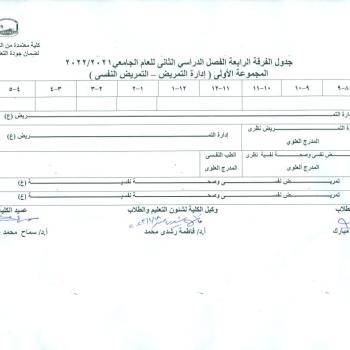 Fourth year schedule - first group (nursing management - psychiatric nursing) for the second semester of the academic year 2022-2023 AD