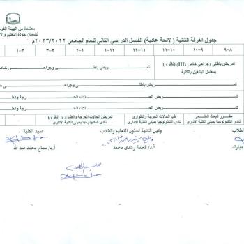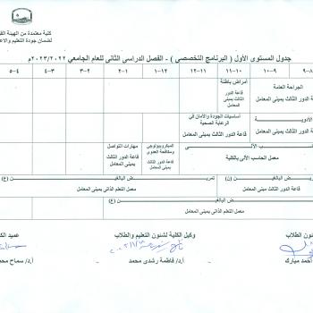 schedule of the first level (specialized program) for the second semester of the academic year 2022-2023 AD