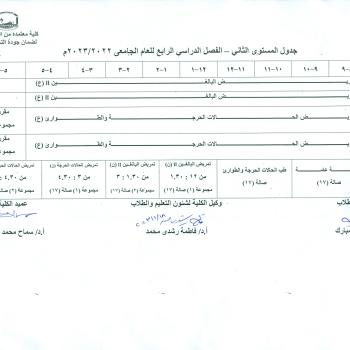 Scedule of the second level (fourth semester) for the second semester of the academic year 2022-2023 AD