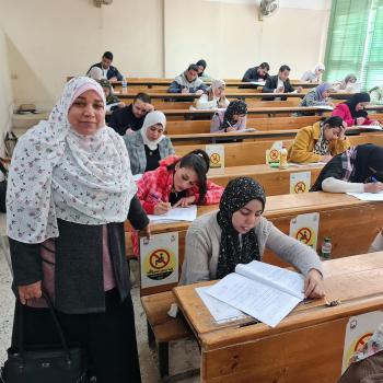 Prof. Dr. Ikram Ibrahim Mohamed, Vice Dean for Postgraduate Studies and Research, inspects the work of the preliminary master's exams
