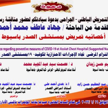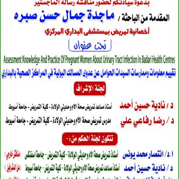The master's thesis of the researcher / Jihad Atef Muhammad, a nursing specialist at Al-Sadr Hospital in Assiut, obtained an excellent grade