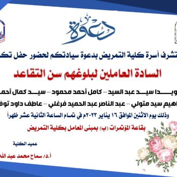 Prof. Samah Mohamed Abdallah, Dean of the Faculty, Vice Deans, members of the faculty and staff of the Faculty extend their heartfelt congratulations to Mr. Mahmoud Younis Abo Ghadir