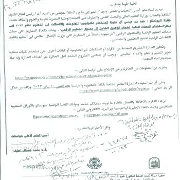 Central Administration for Cultural Relations *** Announcement of the UNESCO / Hamad bin Isa Al Khalifa Prize for the use of information and communication technology in education for the year 2022