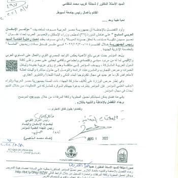 The Seventh Arab Housing Conference, which will be held under the auspices of His Excellency the President of the Republic during the period 18 - 20/12/2022 at the St. Regis Hotel in the new administrative year
