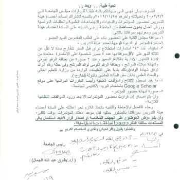 Decision of the University Council regarding the requirements for the participation of members to attend conferences, scientific meetings, seminars and workshops without the participation of the university