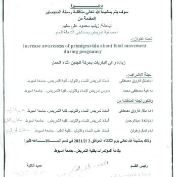 By God willing, Master thesis submitted by researcher/ Zienab Mahmoud Ali Sleem, nursing specialist, will be discussed on Tuesday, 2/2/2021, at 10:00 a.m., at the conference hall of the college.…