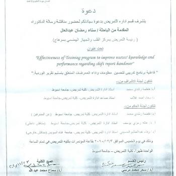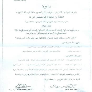 By God willing, doctoral thesis submitted by researcher/ Heba Mustafa Ali Taha - assistant lecturer, Department of Nursing Administration, Faculty of Nursing, Assiut University - will be discussed on…