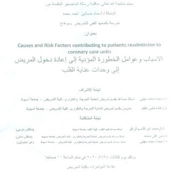 By God willing, master thesis submitted by researcher/ Madeaha Mohamed Hassan Ali, nursing specialist, will be discussed on Monday, 24/8/2020, at 11:00 a.m., at the conference hall of the college.…