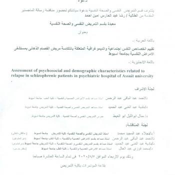 By God willing, master thesis submitted by researcher/ Rasha Abdel-Hares Amin- Demonstrator, Department of Psychiatric Nursing , Faculty of Nursing, Assiut University - will be discussed on Wednesday…