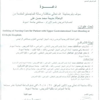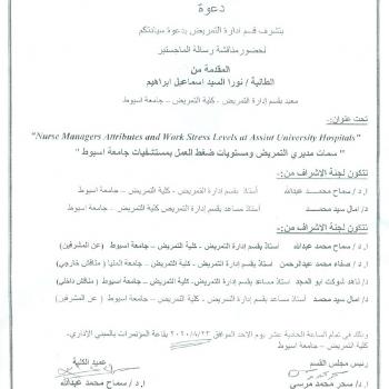 By God willing, master thesis submitted by researcher/ Nora El-Sayed Ismail Ibrahim - demonstrator, Nursing Administration Department, Assiut University- will be discussed on Sunday, 23/8/2020, at 11…