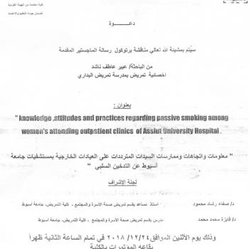 By God willing, the protocol of master thesis submitted by researcher/ Abeer Atef Nashed, nursing specialist, will be discussed on Monday, 24/12/2018, at 2:00 p.m., at the conference hall of the…