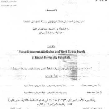 By God willing, the protocol of master thesis submitted by researcher/ Noura Al-Sayed Esmail- Demonstrator, Department of Nursing Service Administration , Faculty of Nursing, Assiut University- will…