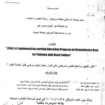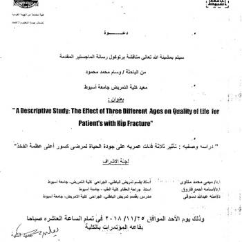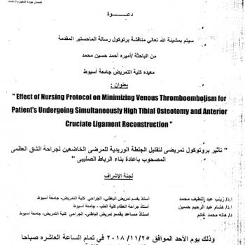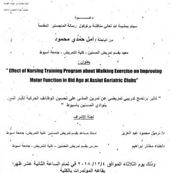 By God willing, the protocol of master thesis submitted by researcher/ Aml Hamdi Mahmoud- Demonstrator, Department of Geriatric Nursing , Faculty of Nursing, Assiut University- will be discussed on…