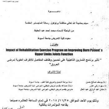 By God willing, the protocol of master thesis submitted by researcher/ Amira Ahmed Hussein Mohamed will be discussed on Sunday, 25/11/2018, at 10:00 a.m., at the conference hall of the college.…