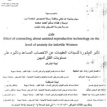 By God willing, the protocol of master thesis submitted by researcher/ Wessam Mohamed Mahmoud will be discussed on Sunday, 25/11/2018, at 10:00 a.m., at the conference hall of the college.
