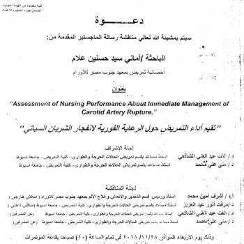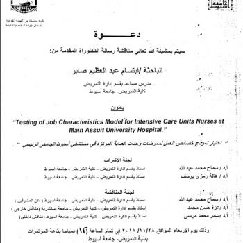 By God willing, doctoral thesis submitted by researcher/ Ebtisam Abdel-Azeem Saber- Assistant Lecturer, Department of Nursing Service Administration , Faculty of Nursing, Assiut University- will be…